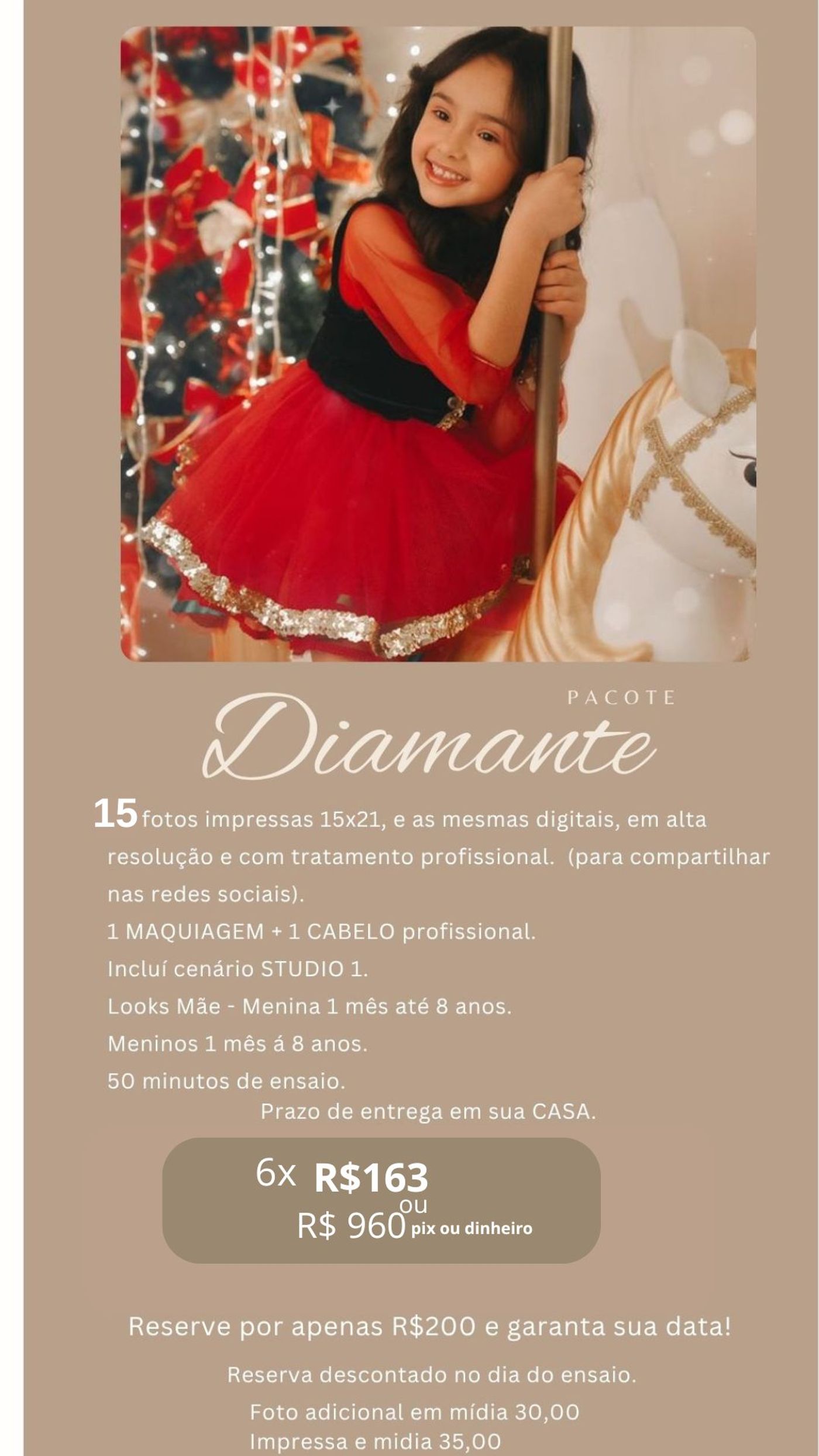 Cenário grande, ideal para famílias 2 looks para mamães (P ao GG) Roupas para crianças de 0 a 8 anos (meninas e meninos) 2 looks variados para as crianças! Fotógrafa: Ana
